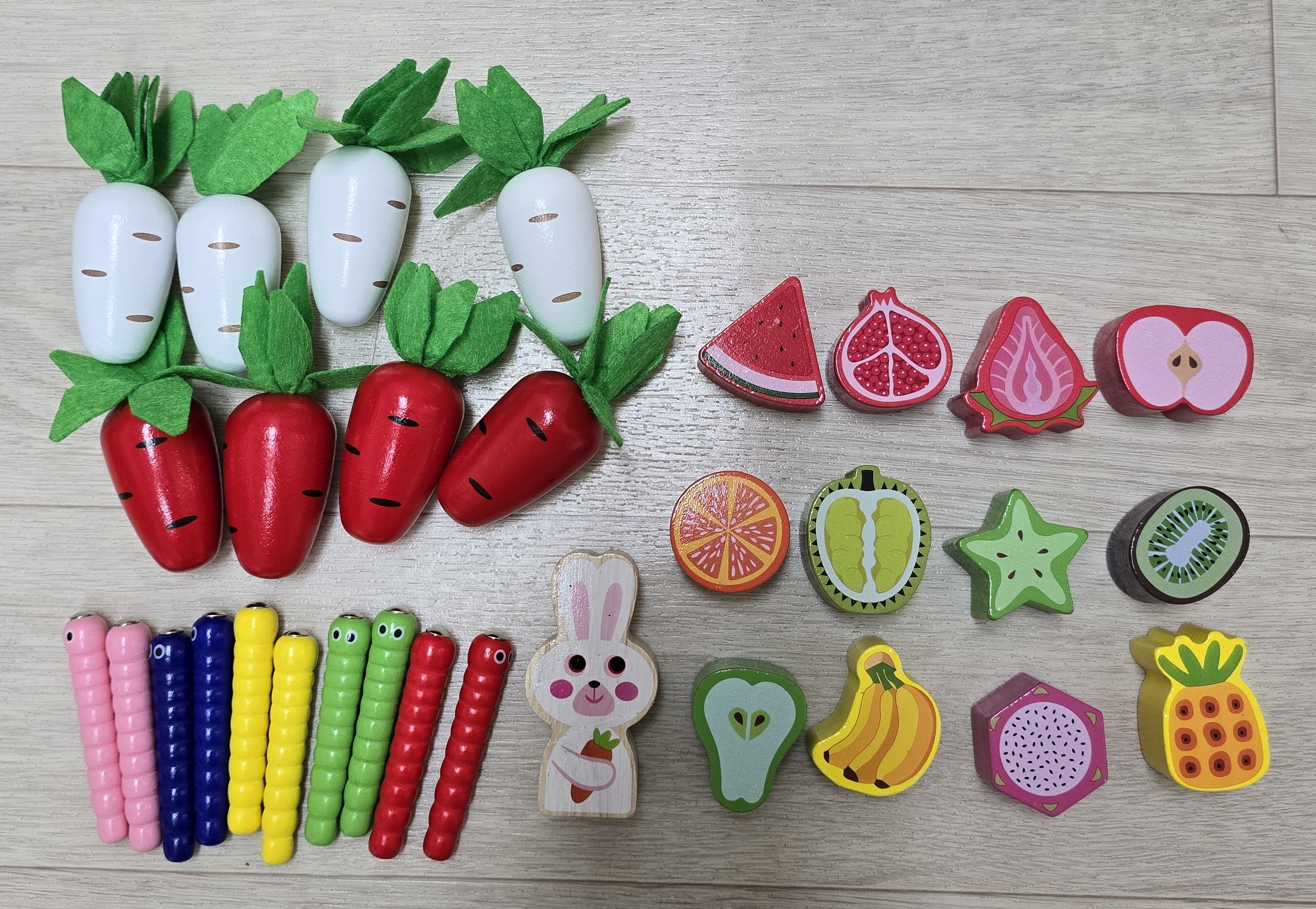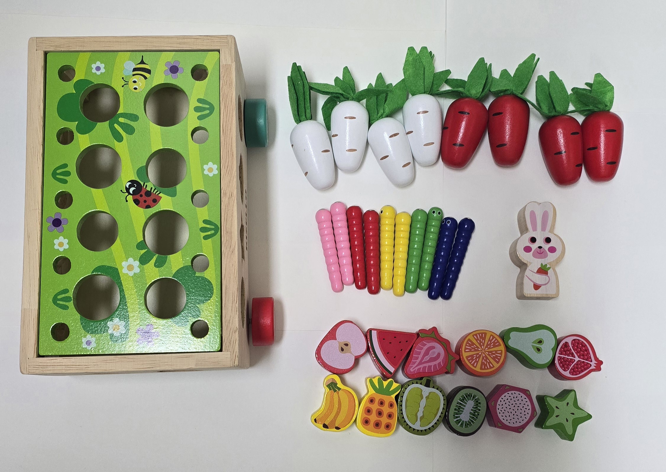 자동차 구멍에 알맞는 채소와 과일을 맞춰 넣으세요. 아이의 손으로 직접 밀고 당기면서 자동차 놀이도 할 수 있어요.