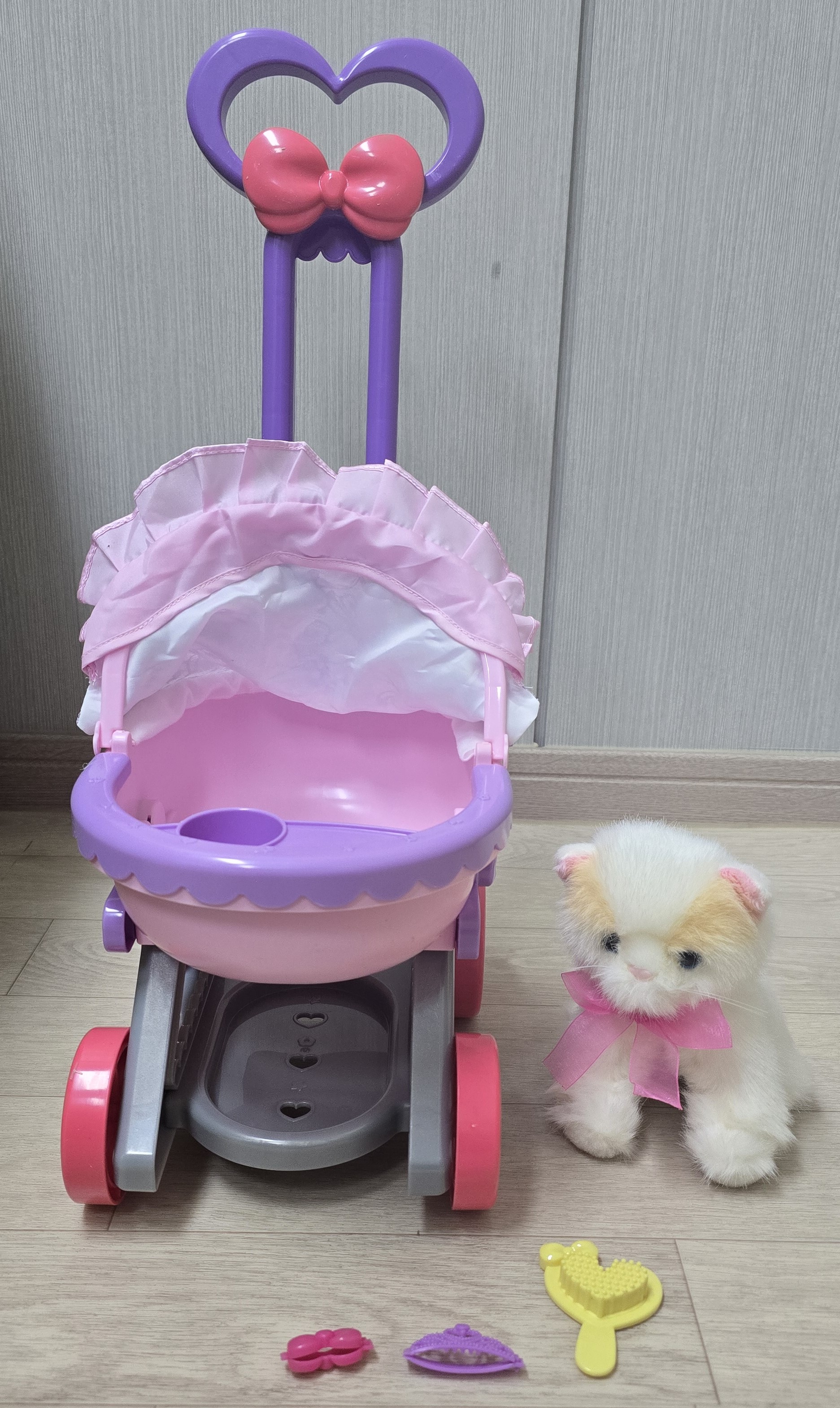 유모차를 타면 노래를 불러요. 빗으로 빗겨주면 소리가 나요.