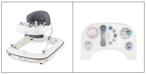 성장에 따라 단계로 높이를 조절할 수 있으며 놀이판 버튼을 누르면 동요와 동물 사운드가 나옵니다.