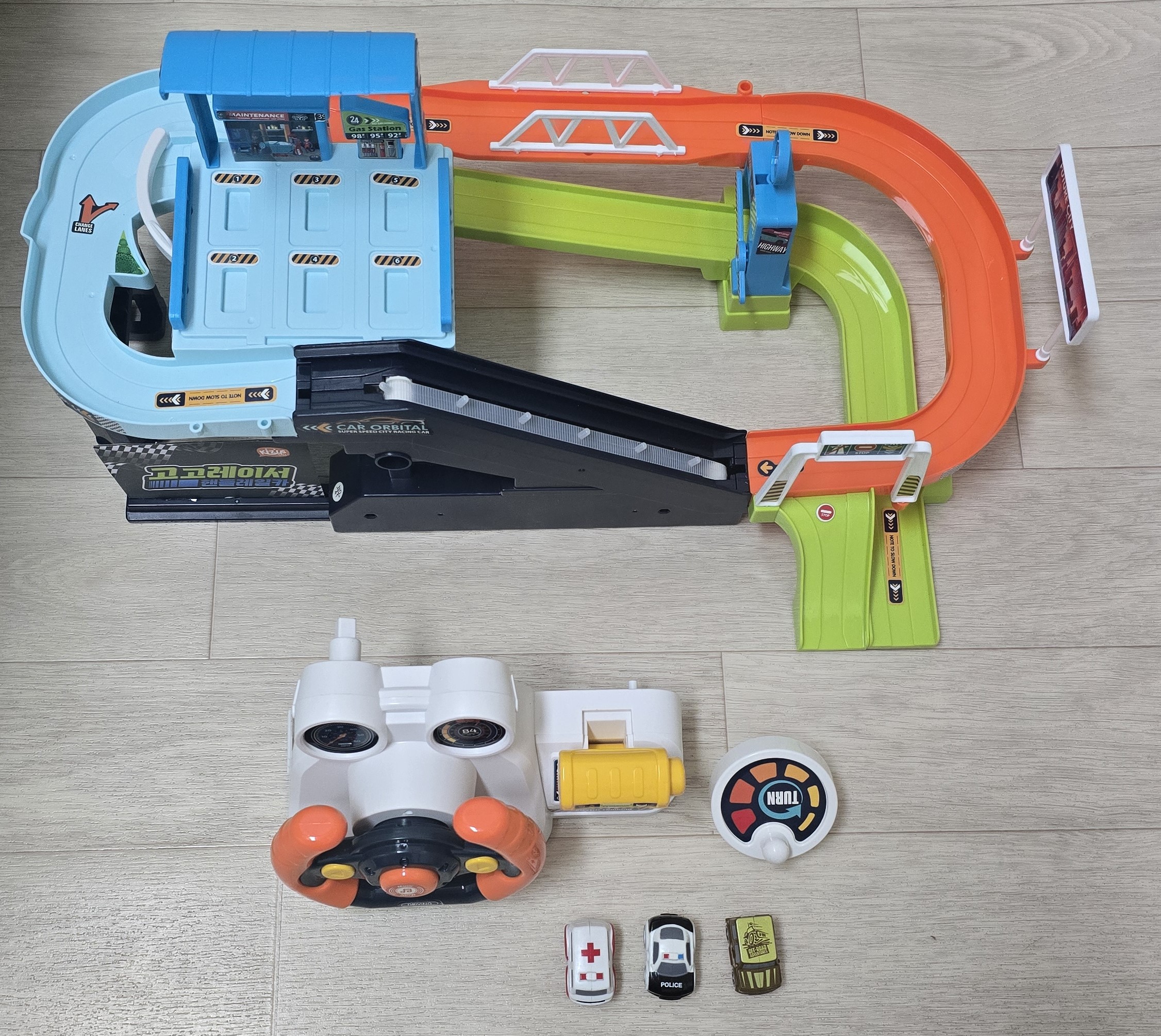 좌우로 핸들을 돌리며 버튼을 누르며 신나는 운전놀이가 가능하며 효과음과 멜로디가 나와요. 자동, 수동 모두 가능하며 미니카를 주차시키면서 자연스럽게 정리정돈하는 습관도 길러주세요.