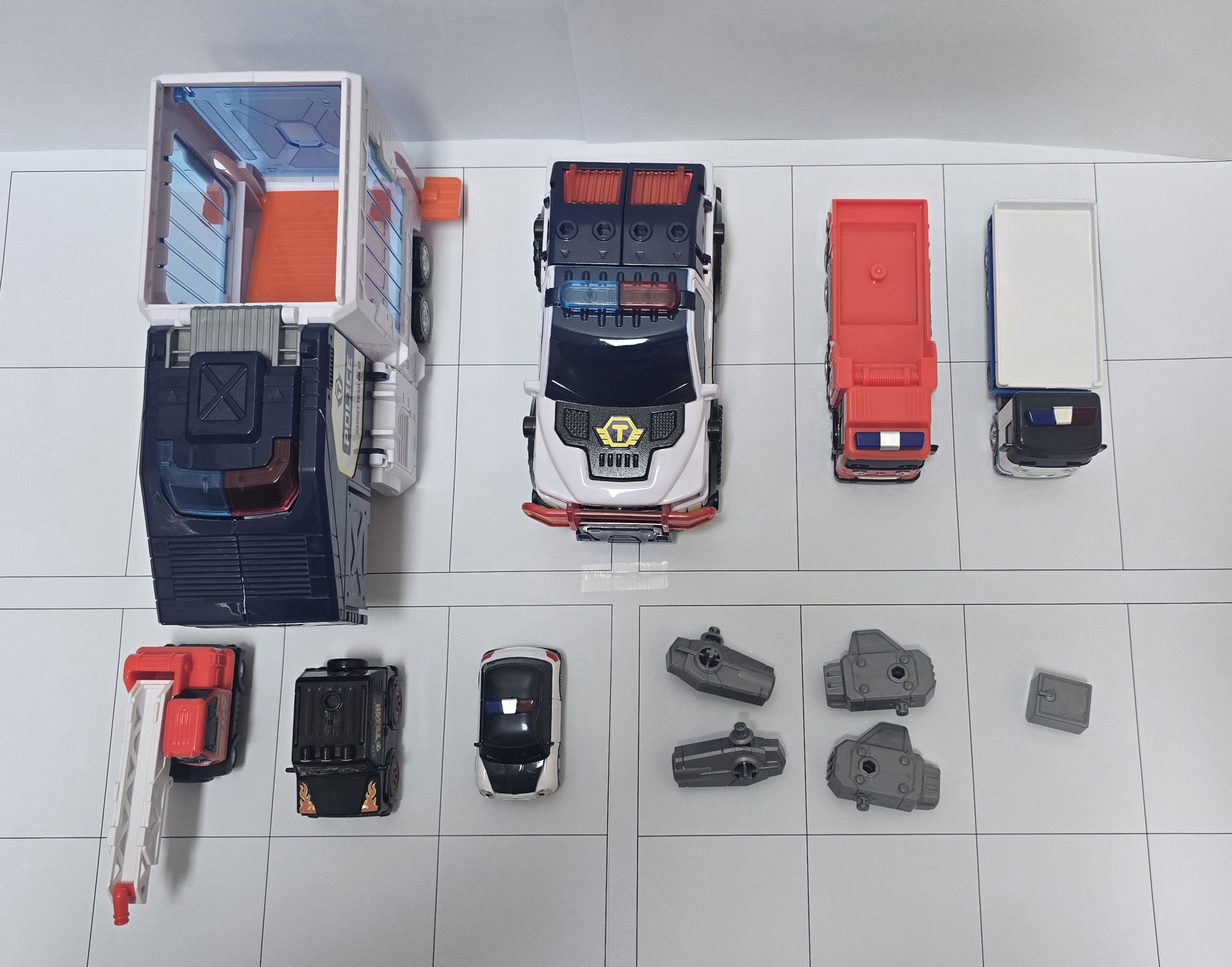 트레일러가 경찰기지로 변신하며 트레일러 감옥에 배드카를 체포할 수 있습니다. 5가지 액션파츠를 장착해서 다양한 상황을 연출할 수 있습니다.