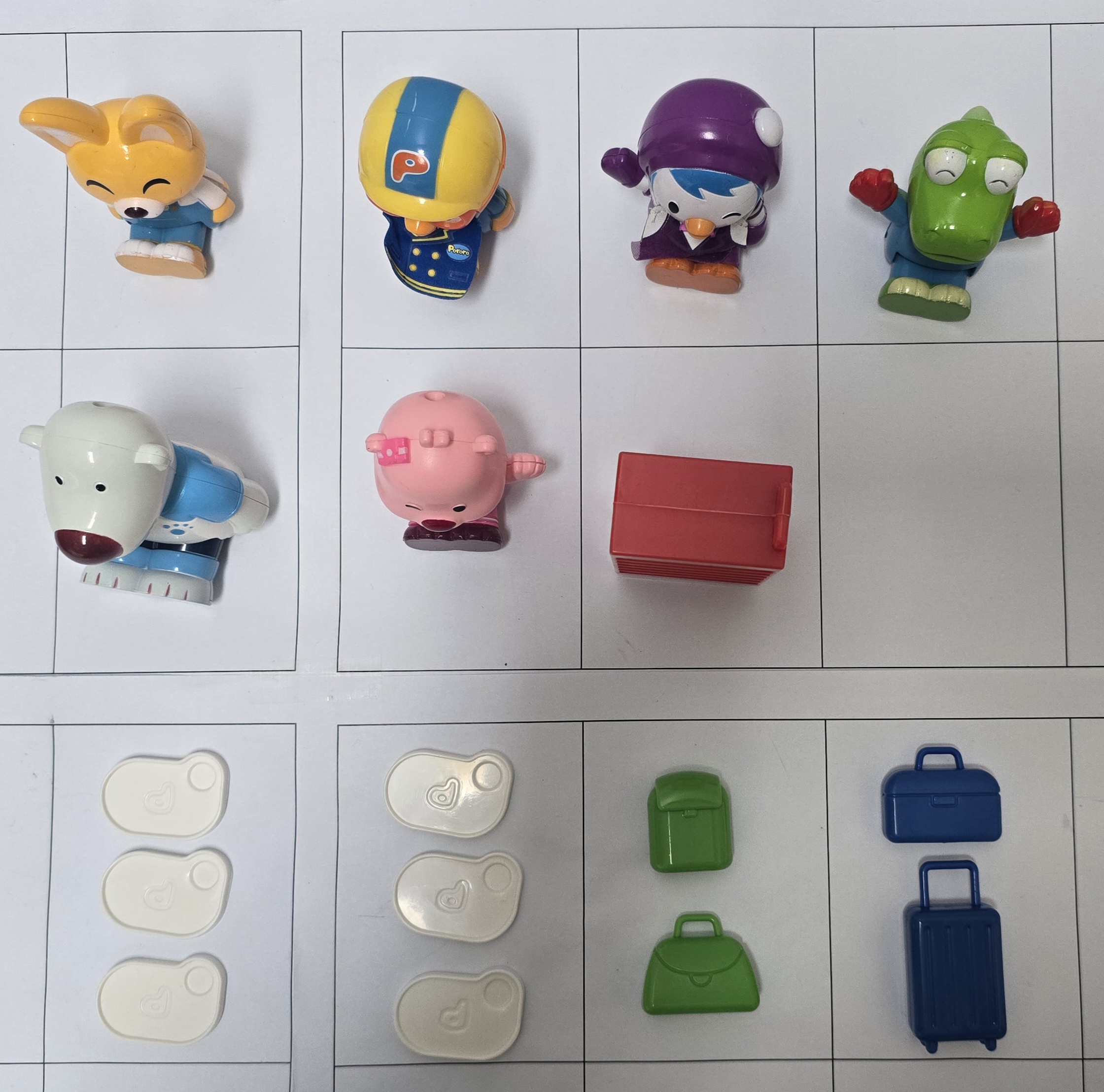 뽀로로친구들 피규어와 여행 가방을 들고 비행기를 타고 떠나는 여행 놀이를 할 수 있습니다.