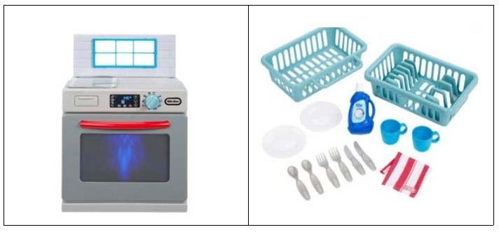 작동버튼을 누르면 실제 물처럼 아른거리는 예쁜빛이 나오며 주방세제, 식기, 바구니가 포함된 식기 세척기완구입니다.