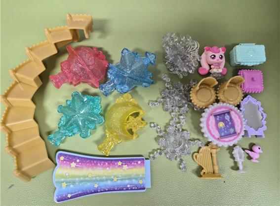 프랍을 꽂으면 불빛이 반짝입니다. 파츠와 프랍을 원하는 위치에 꽂아서 나만의 캐슬을 완성할 수 있습니다.