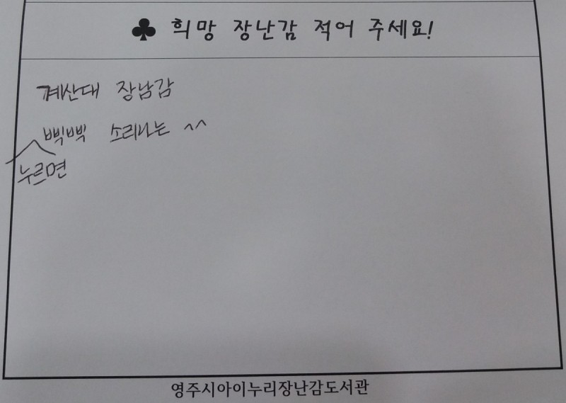 커뮤니티 도서관 소개 대여안내 장난감 검색 놀이방 신청 프로그램 토이뱅크 커뮤니티 희망장난감 요청 공지사항 갤러리 자주하는 질문 자유게시판 희망장난감 요청 장난감배달 신청 백일/돌 대여 신청 장난감 안전교육영상 발달 단계별 장난감 정보 누리마켓