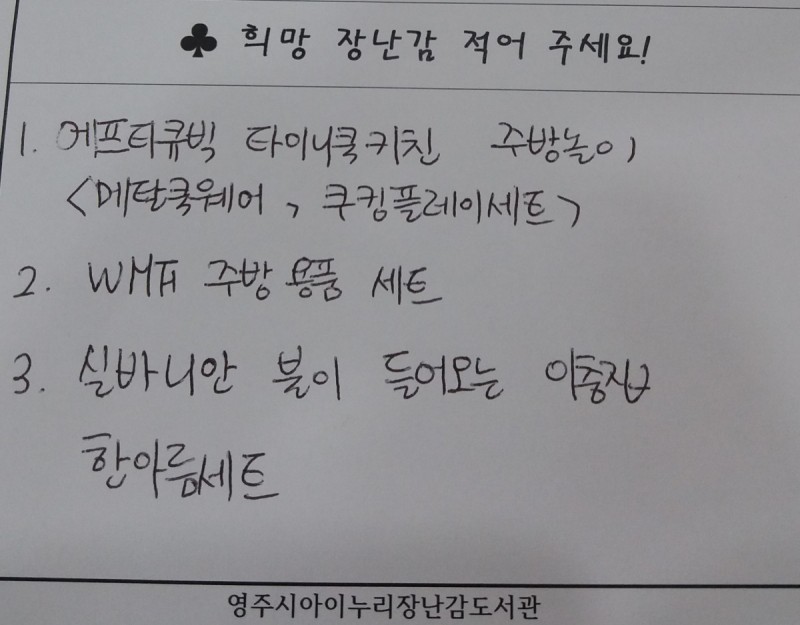 희망 장난감 요청합니다. 본문 작성자 장난감도서관 등록일 18-04-03 14:06 조회 111 희망 장난감 요청합니다. 이전글희망 장난감 요청합니다. 다음글희망 장난감 요청합니다. 목록 댓글목록 1 댓글목록 장난감도서관님의 댓글 장난감도서관 작성일 18-04-03 14:52 새로운 장난감 구입시 참고하도록 하겠습니다. 늘 장난감도서관에 관심 가져주셔서 감사합니다. 새로운 장난감 구입시 참고하도록 하겠습니다. 늘 장난감도서관에 관심 가져주셔서 감사합니다.