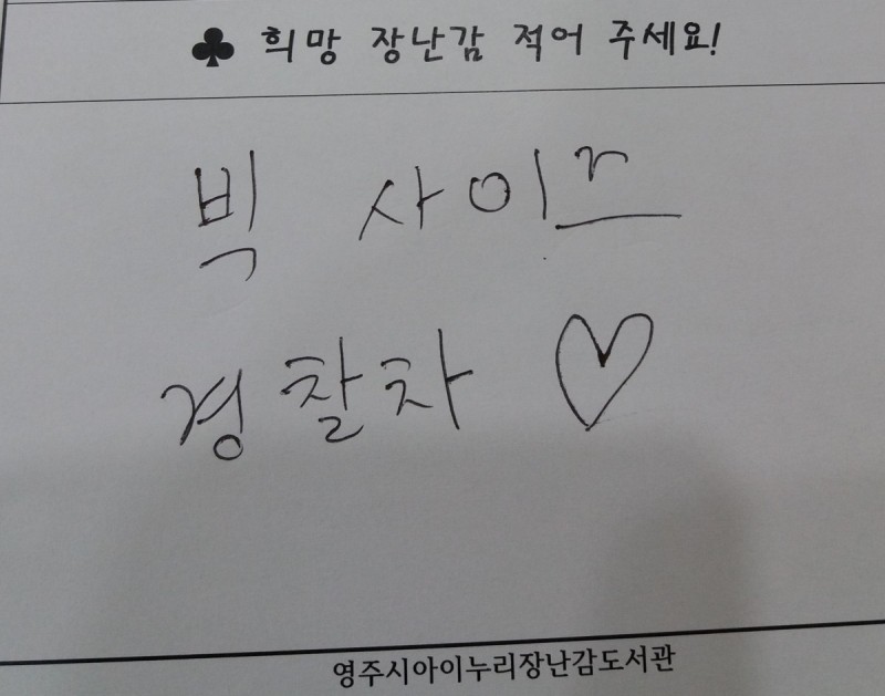 장난감도서관님의 댓글 장난감도서관 작성일 18-09-21 15:16 포트 경찰차 새로운 장난감 구입 하여 현재 장난감 대여중 입니다^^(2018.9.21) 늘 장난감도서관에 관심 가져주셔서 감사합니다. 포트 경찰차 새로운 장난감 구입 하여 현재 장난감 대여중 입니다^^(2018.9.21) 늘 장난감도서관에 관심 가져주셔서 감사합니다.